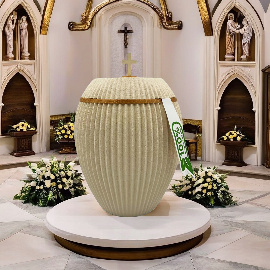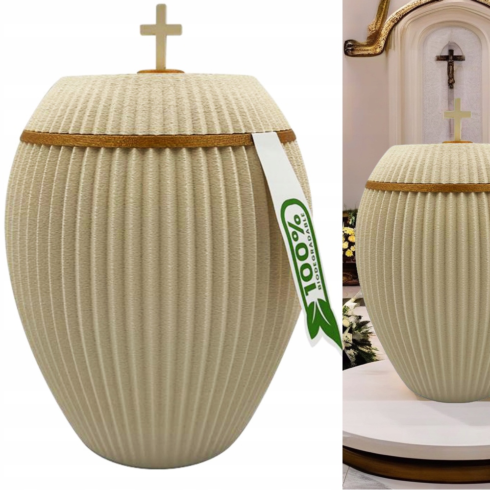Przedstawiamy ekologiczną urnę pogrzebową wykonaną z materiałów biodegradowalnych, idealną dla osób ceniących zrównoważony rozwój oraz szacunek dla środowiska. Wyjątkowy design i wysoka jakość wykonania sprawiają, że urna ta jest pięknym i symbolicznym wyborem.